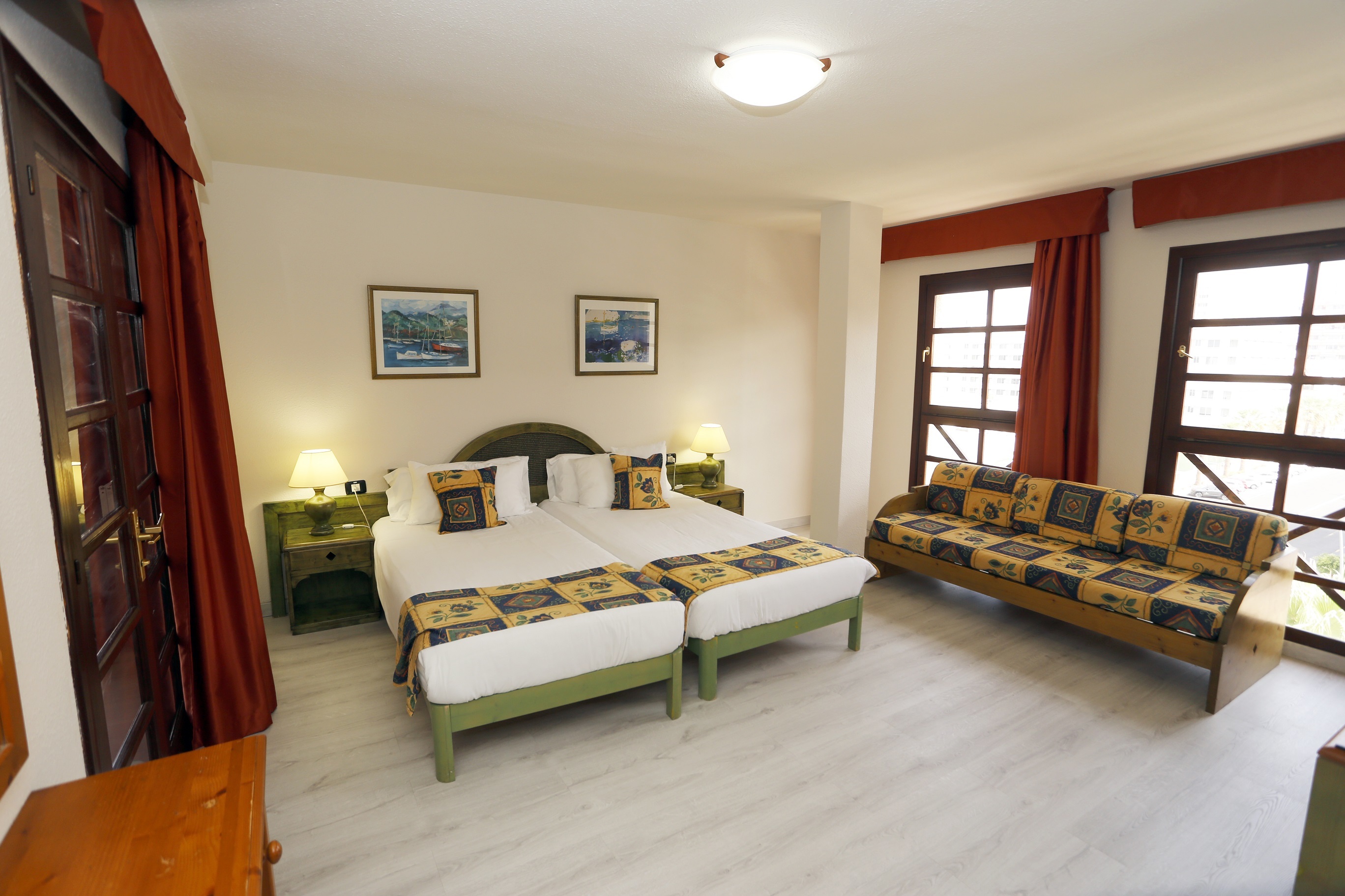 Two bedrooms apartment located in annex building withouth elevator. 2 rooms with two twin-beds. Living- room with sofa and dinning area. Bathroom, kitchen. Located in annex building without elevator. No balcony. No Air Condition. Official category 2 keys.